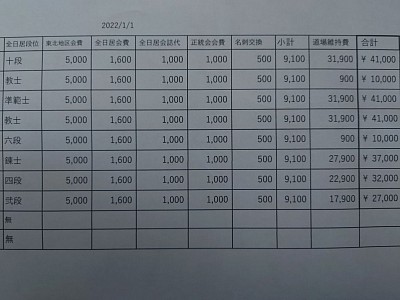 佐藤道場年会費です、この他に冬場は灯油代として1人¥1,000円頂いております。